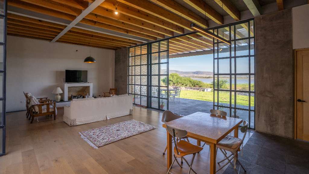 The spectacular view offered by this property is perhaps its greatest asset, since it is only meters away from the Presa Allende. Both houses, exact copies of one another, are divided by a hall which frames a breathtaking view of the dam and the mesmerizing San Miguel desert.