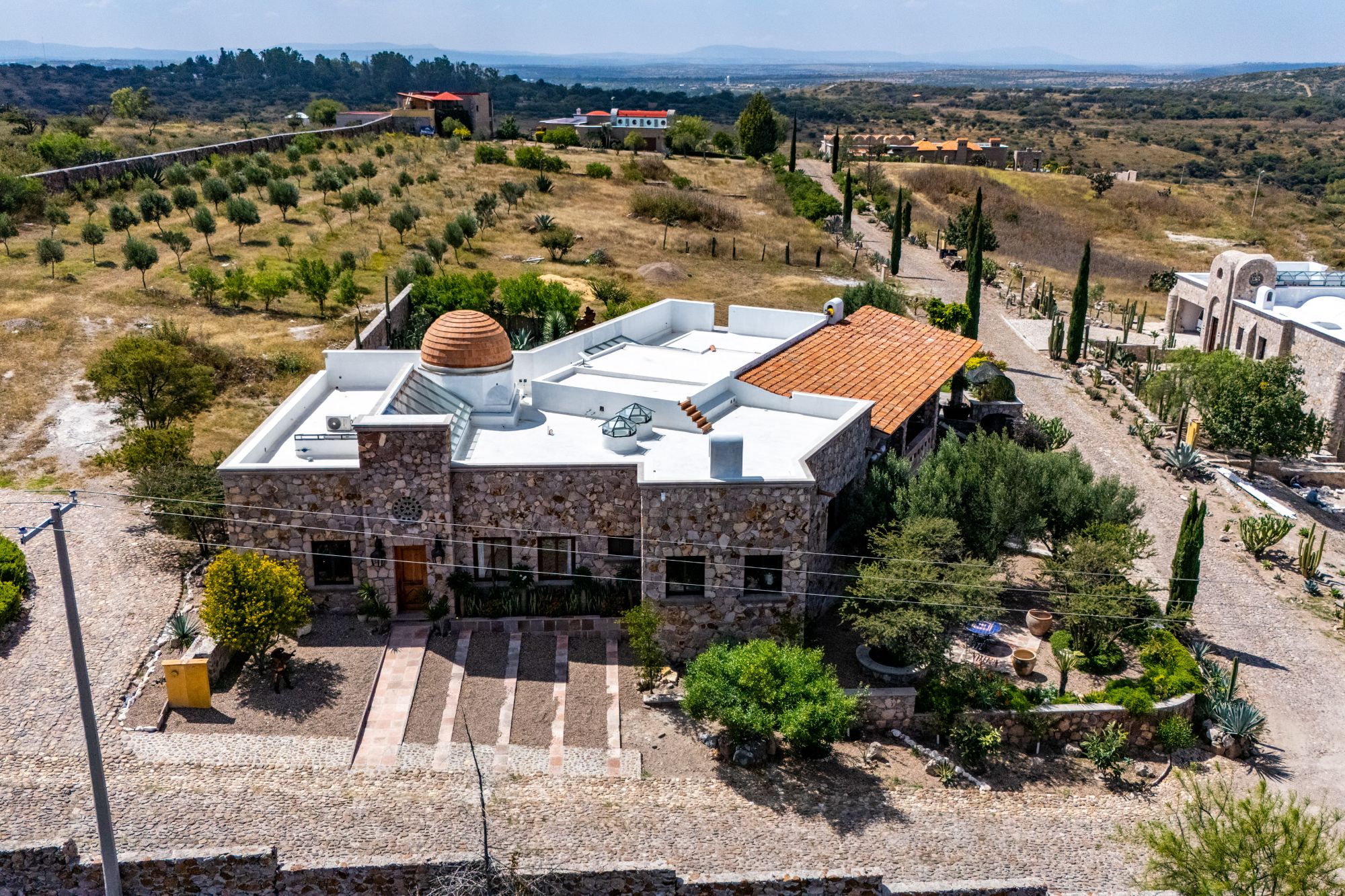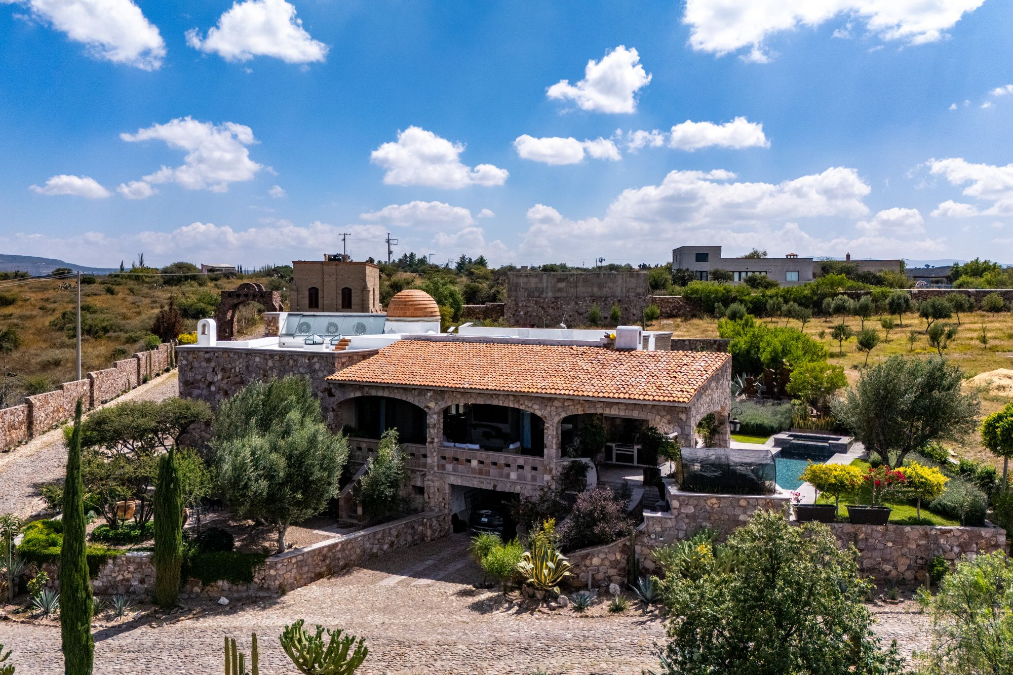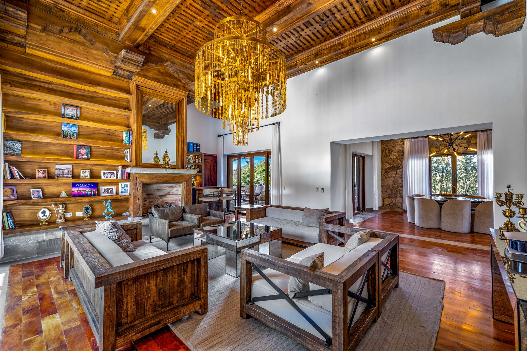Located just 10 minutes from San Miguel de Allende on the road to Dolores Hidalgo, on the entrance right next to 'La Burger' and 'Cien Fuegos' Restaurants, this elegant residence is set within a serene residential community featuring refined modern Mediterranean architecture.