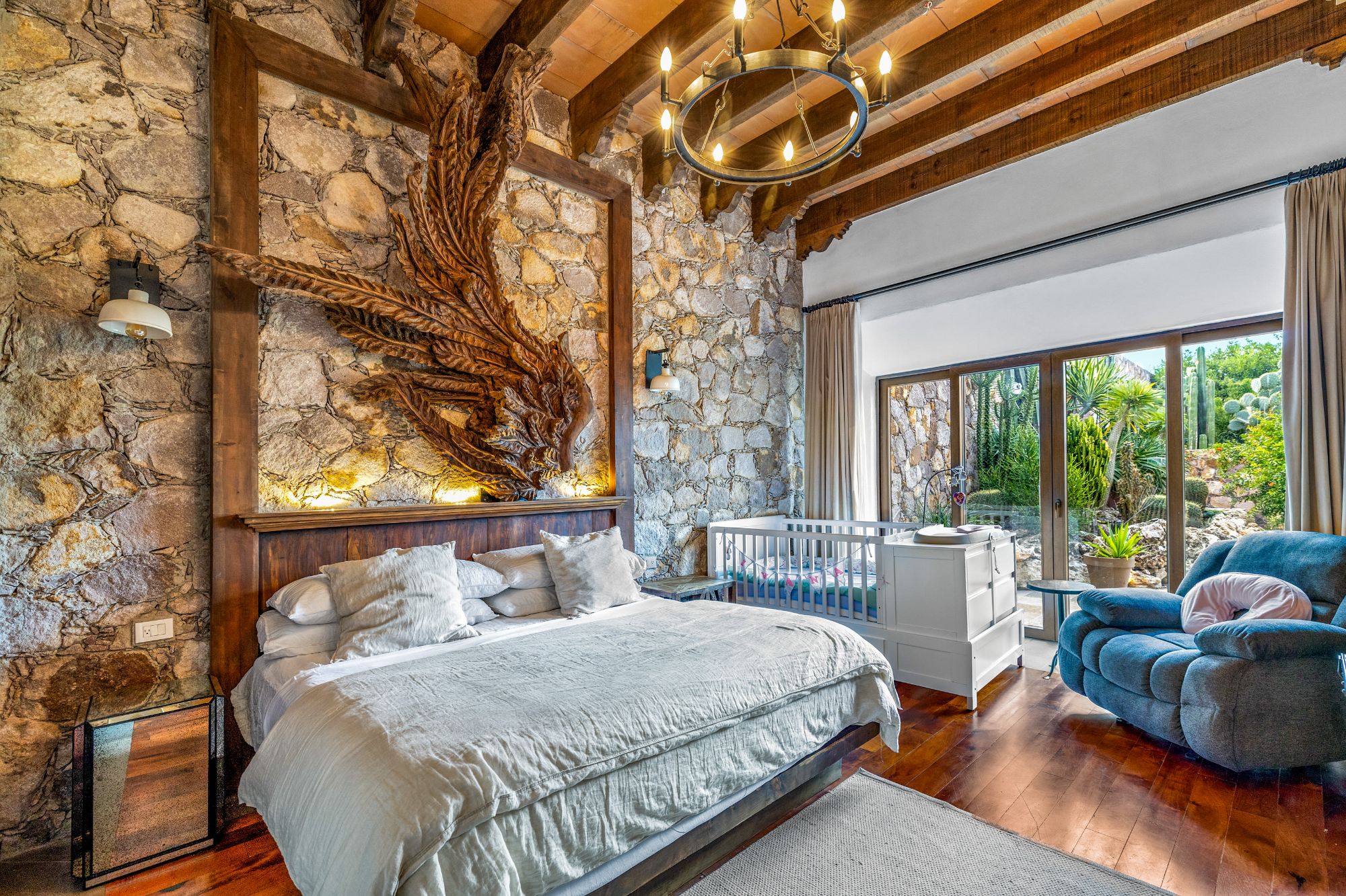 Crafted with natural materials such as stone, adobe, clay, and fine woods, including exquisite design with hardwood floors and artisanal ceilings, the home reflects exceptional craftsmanship and timeless character.