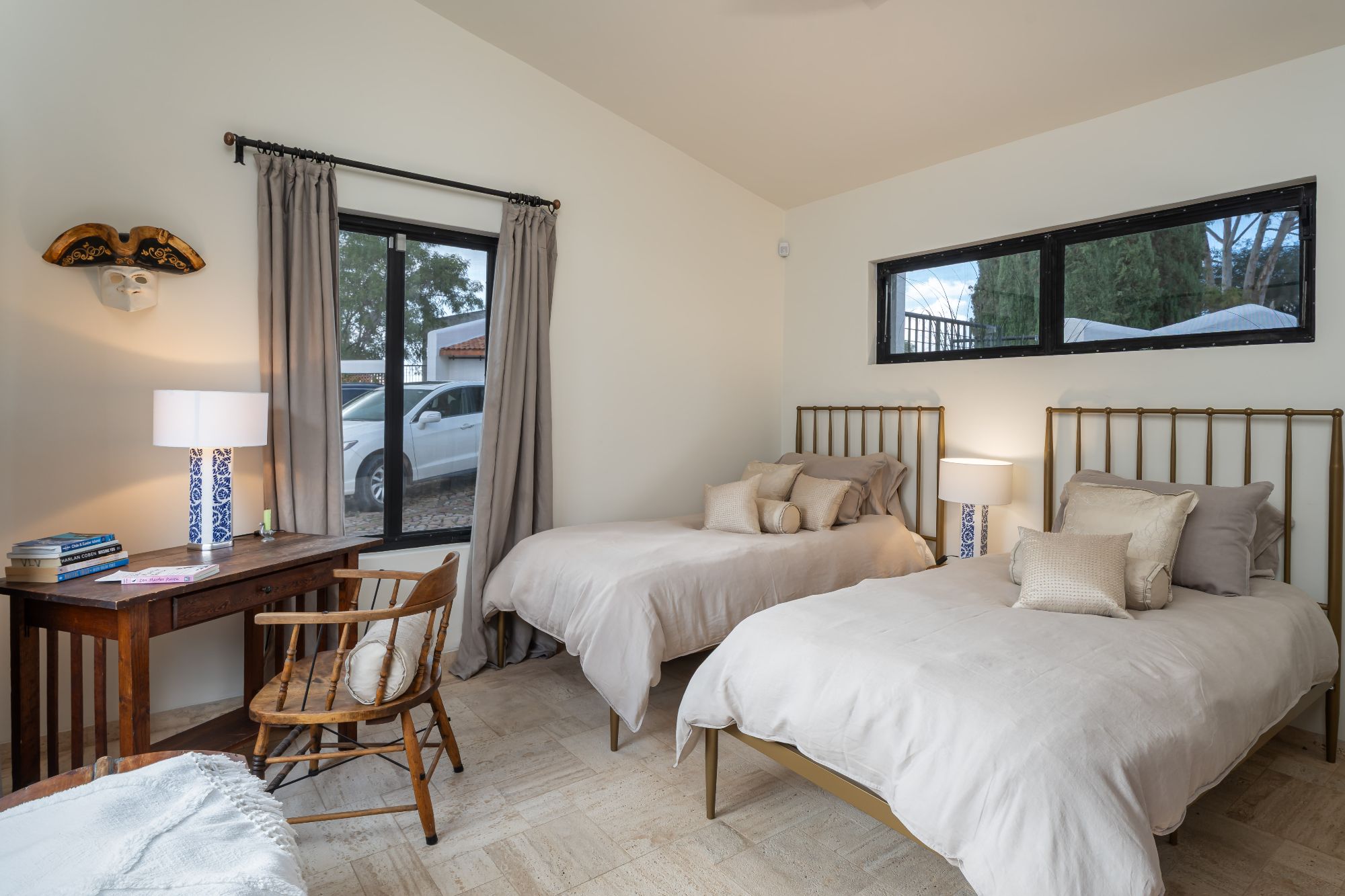 • Two Guest Casitas – one with a private 1-bedroom suite and another with 2 bedrooms, 2 baths, full kitchen, fireplaces, and a charming courtyard with fountain.