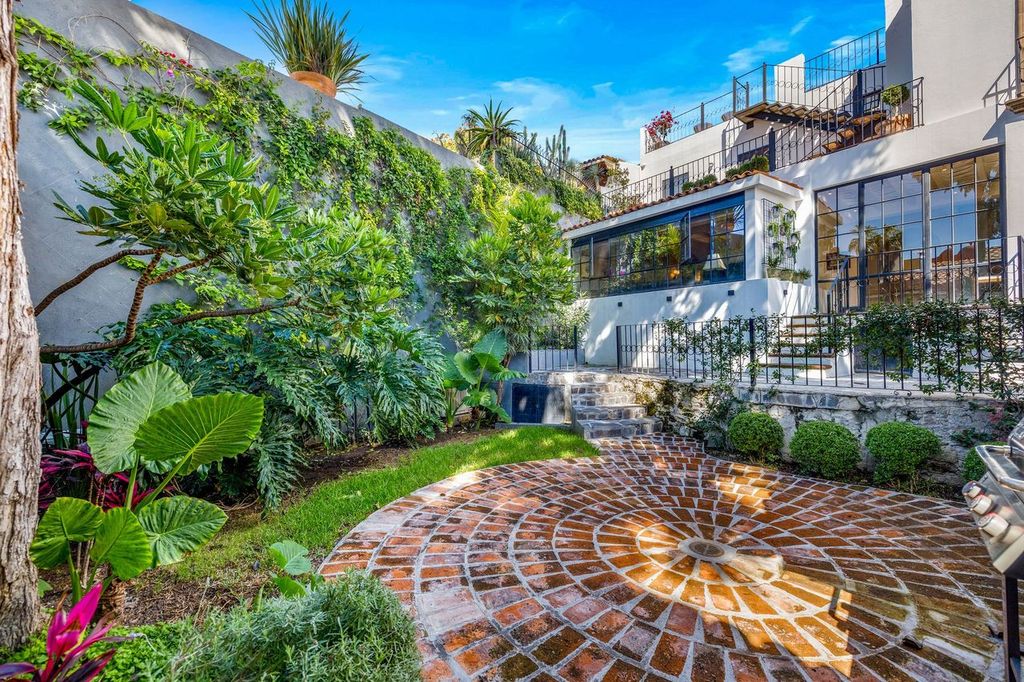 An enchanting patio and lush green areas create a private oasis, complemented by the rare convenience of a garage and a charming one-bedroom casita, ideal for guests or independent living.