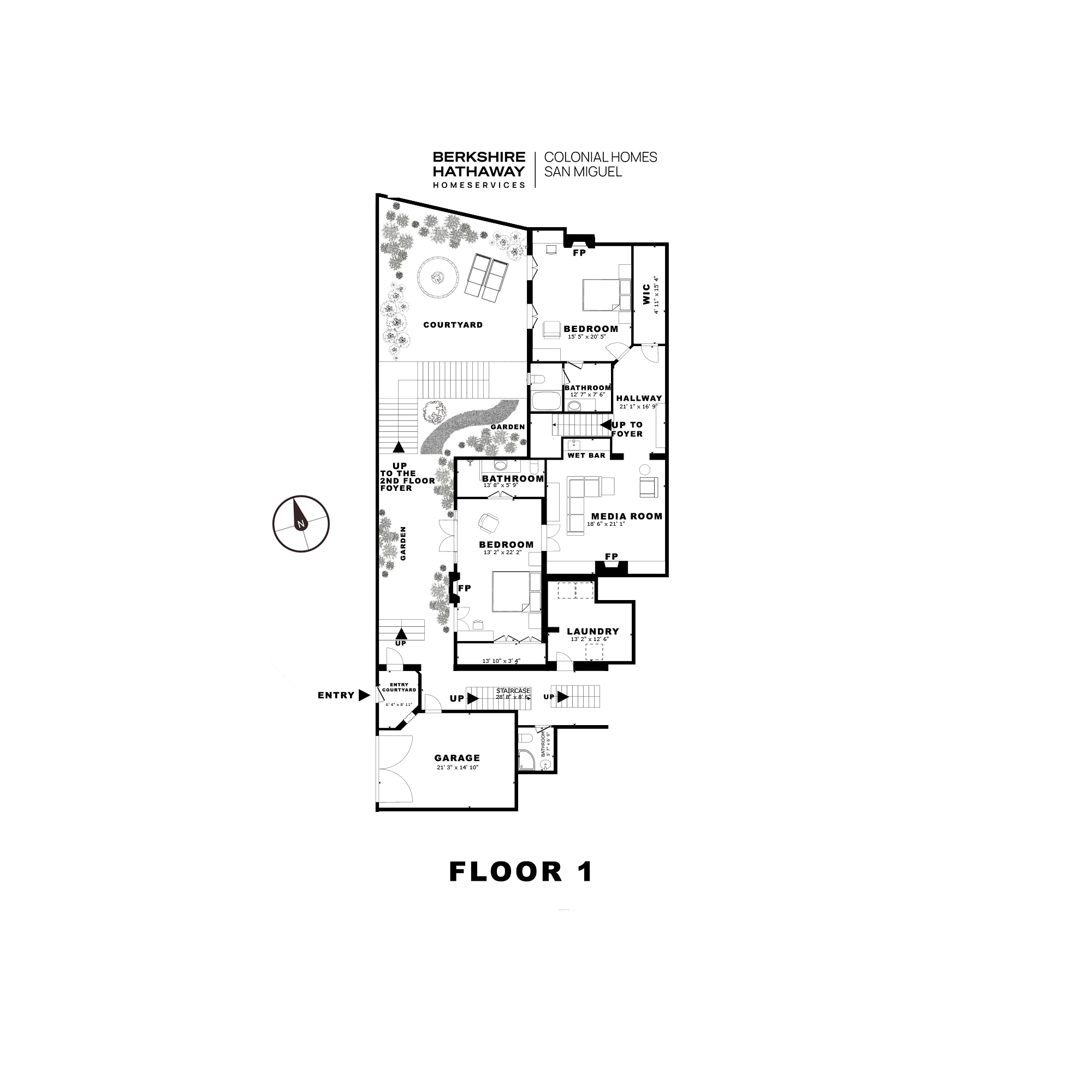 The lower level offers two large en suite guest bedrooms—each opening to the gardens via beveled-glass wood French doors—and an astounding wet-bar media room, surrounded by antique Indian hand-carved wood screens—replete with hand-troweled ceiling and full-periphery art lighting—sets the stage for the most cinematic Maharaja.