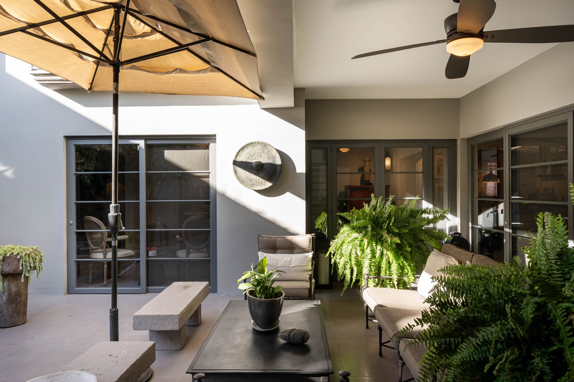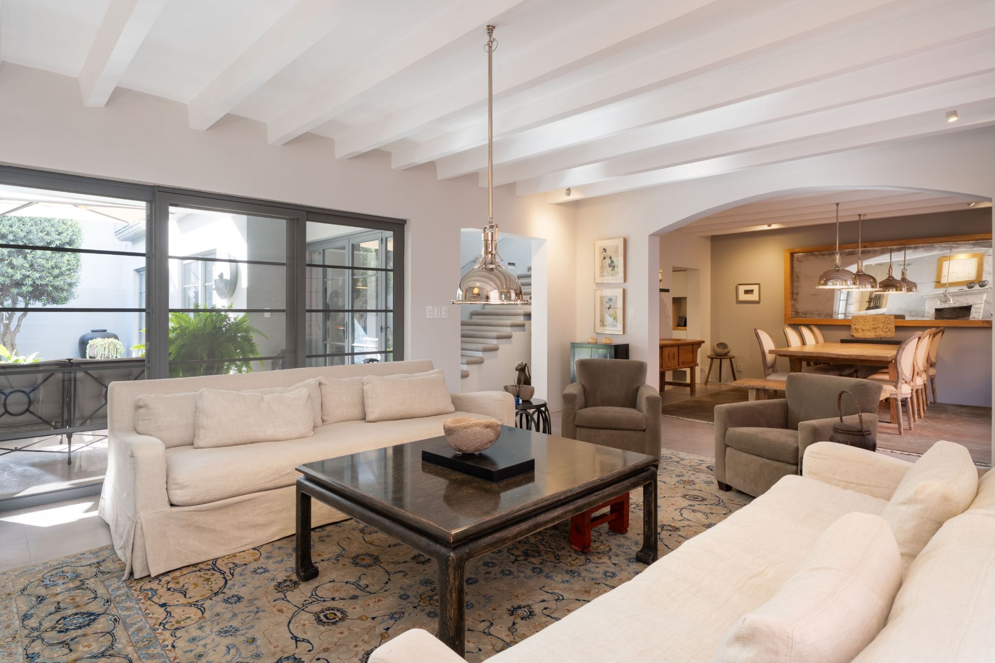 The formal living and dining rooms connect seamlessly to the kitchen through a well-appointed butler’s pantry, while an additional casual living area provides a relaxed vantage point to enjoy the tranquil courtyard views.
