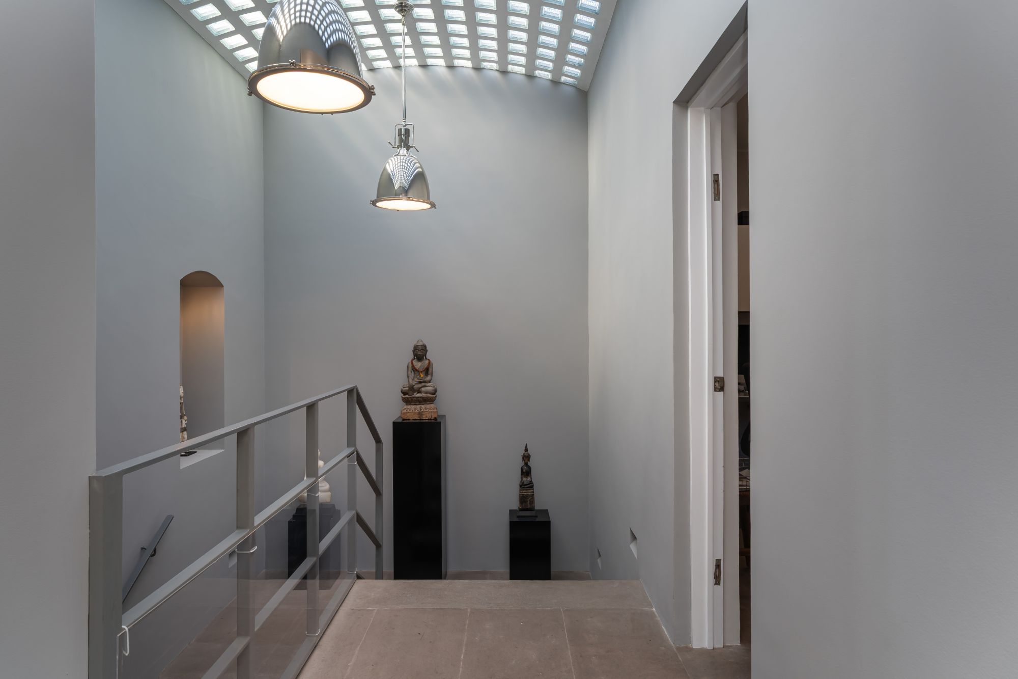 Ascending a dramatic staircase, the second