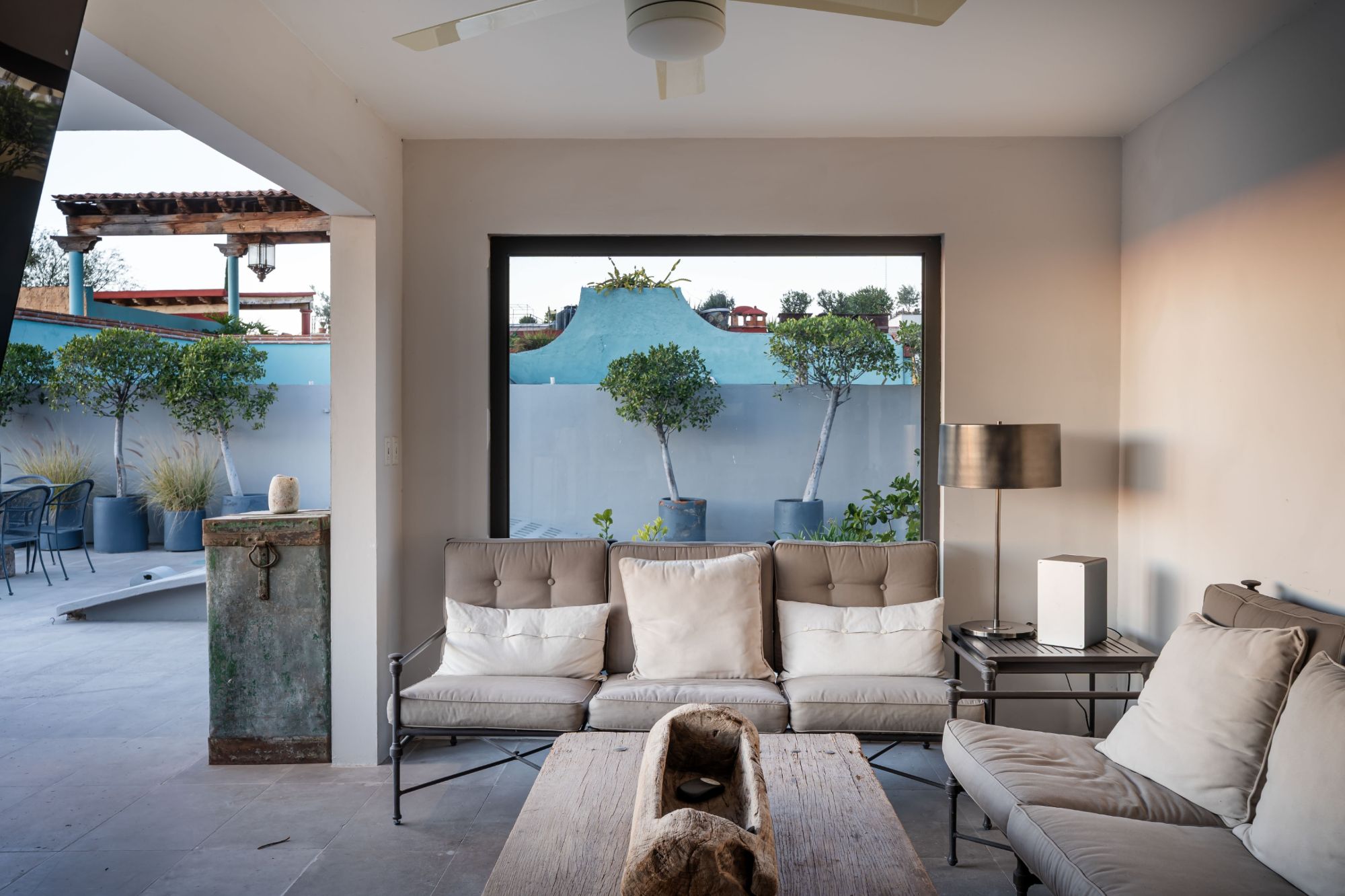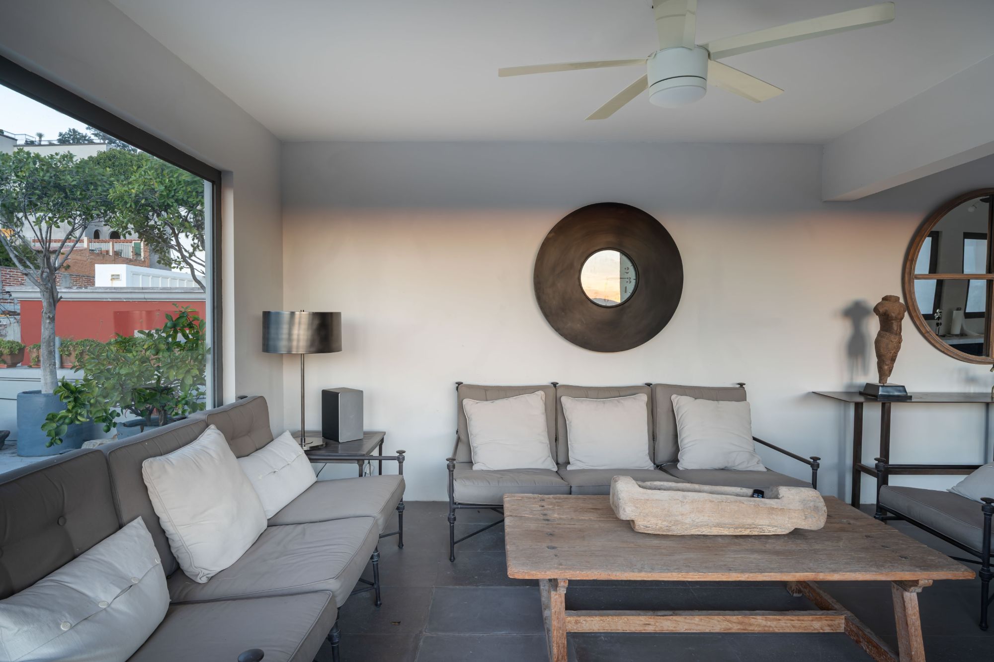 Perfectly situated between Juárez Park and the iconic Parroquia, Casa Marcia offers the very best of San Miguel living. This refined home features a graceful flow and a neutral palette throughout, highlighted by cantera stone floors and expansive walls of windows that fill every space with natural light. Designed for both elegance and ease, it is an inviting haven for everyday comfort as well as sophisticated entertaining.