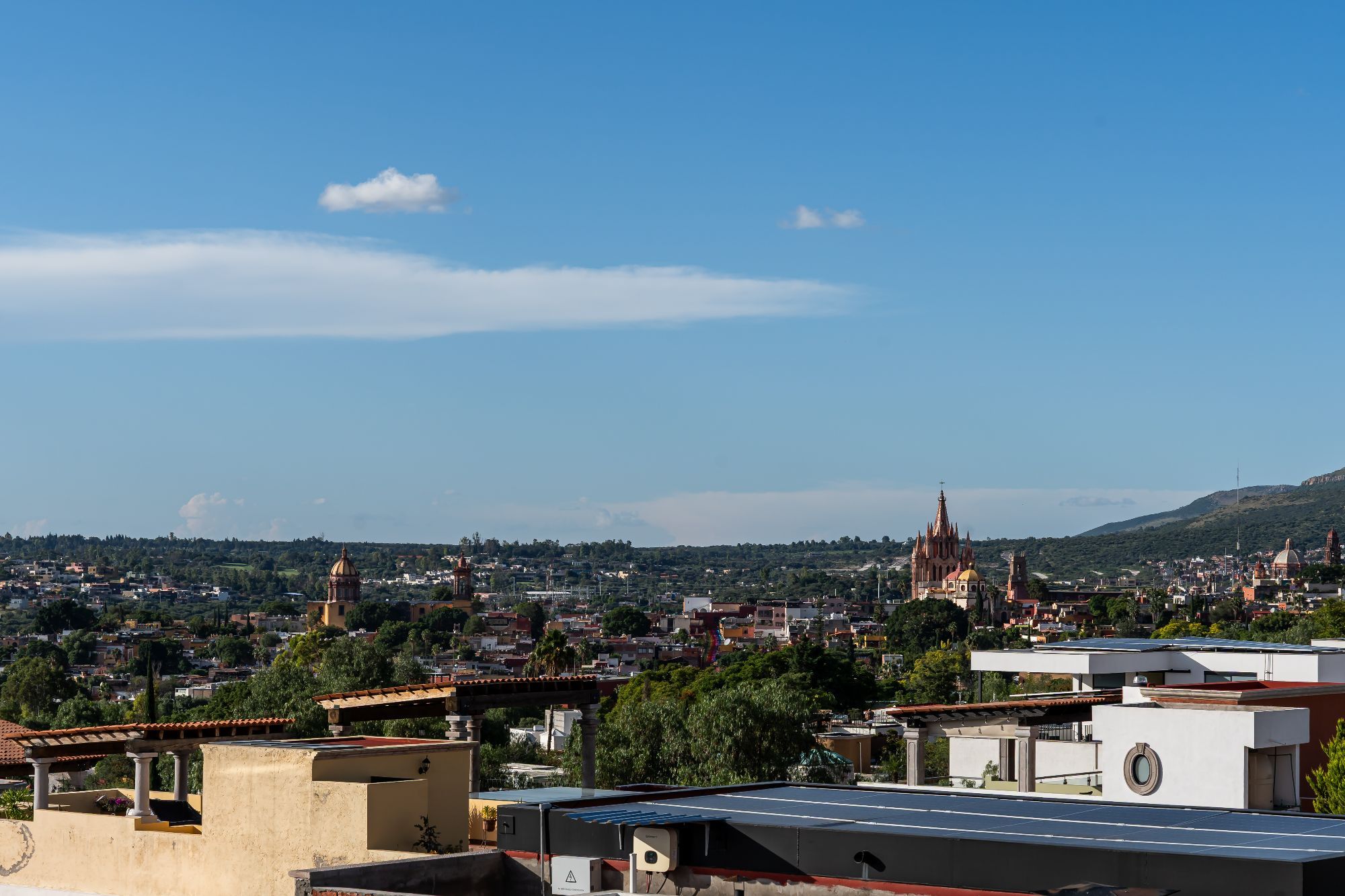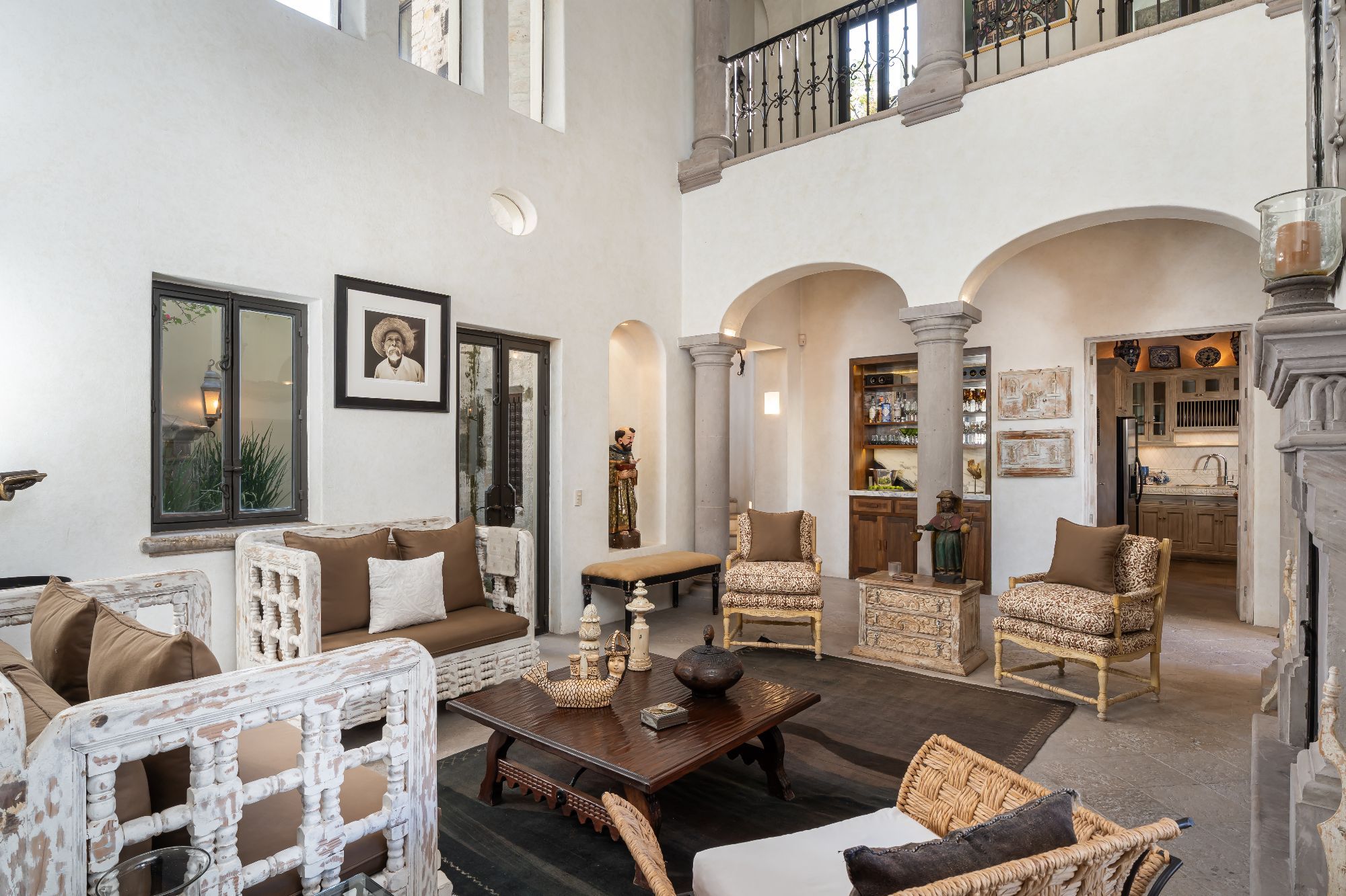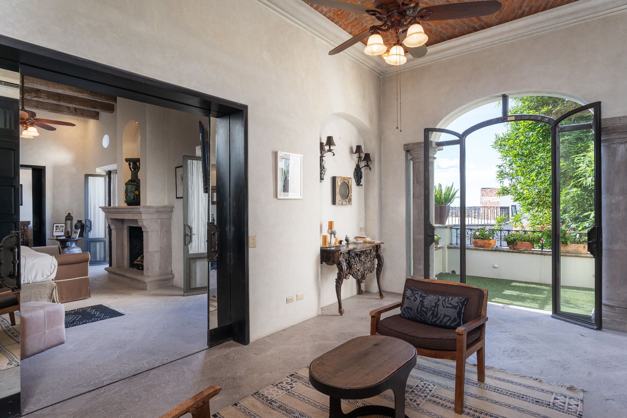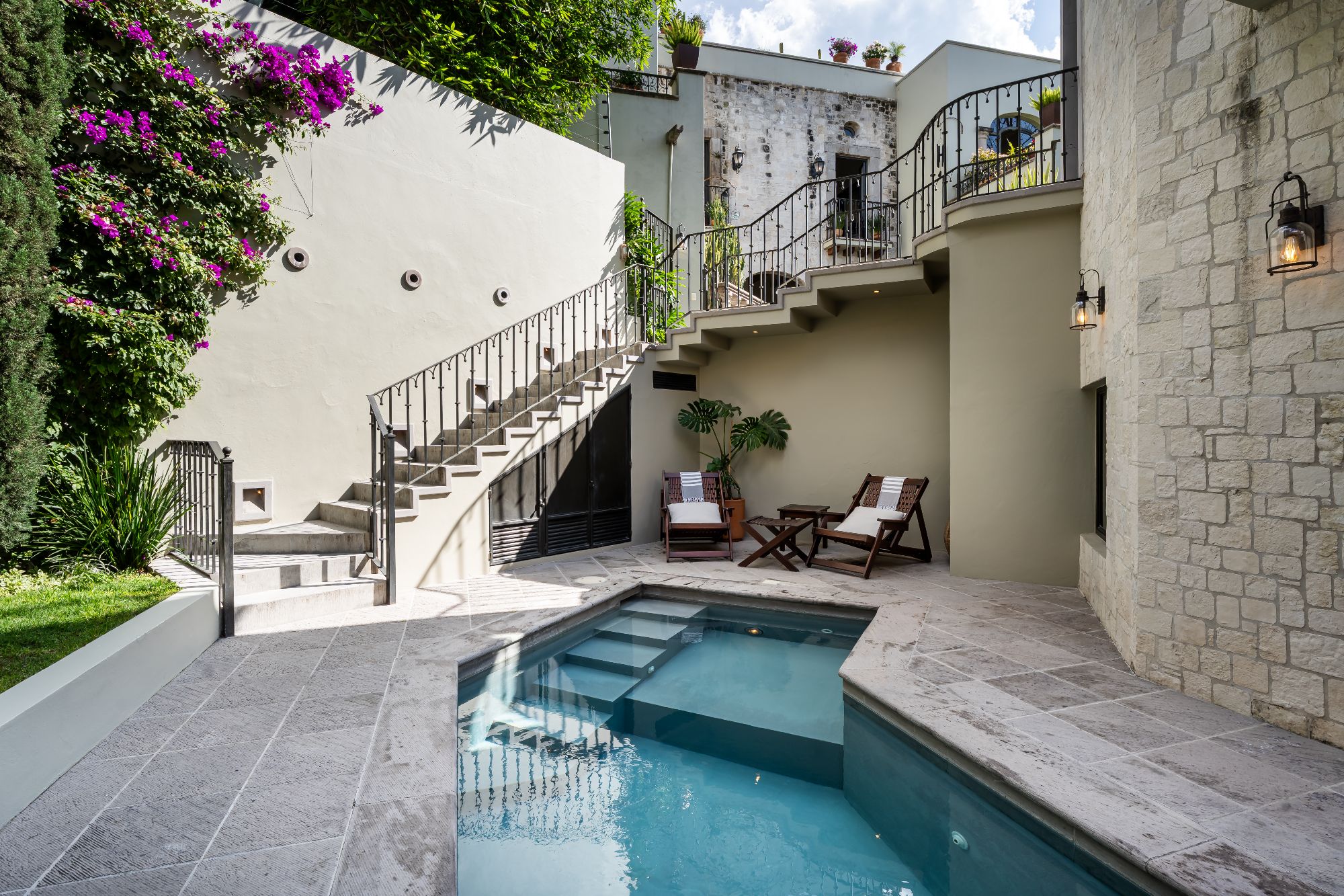 The separate casita offers an ideal retreat for guests. Thoughtfully designed, it includes its own living and dining areas, a full kitchen, and four spacious bedrooms—each with its own en-suite bathroom. Multiple private terraces provide moments of quiet solitude, while a shared swimming pool invites relaxation and fun under the San Miguel sun.