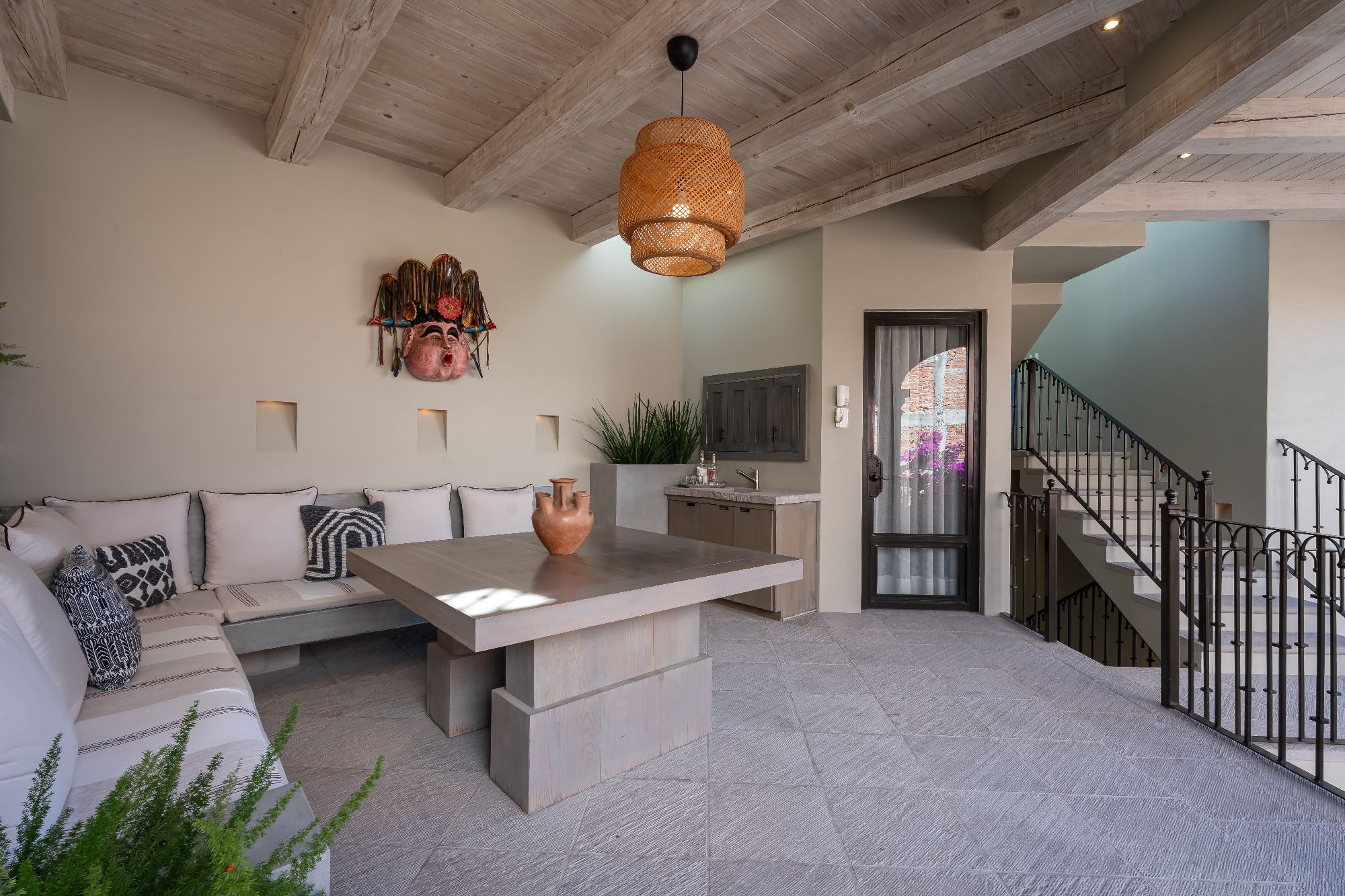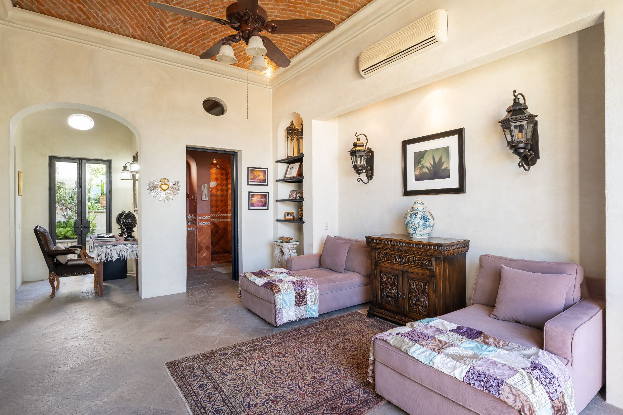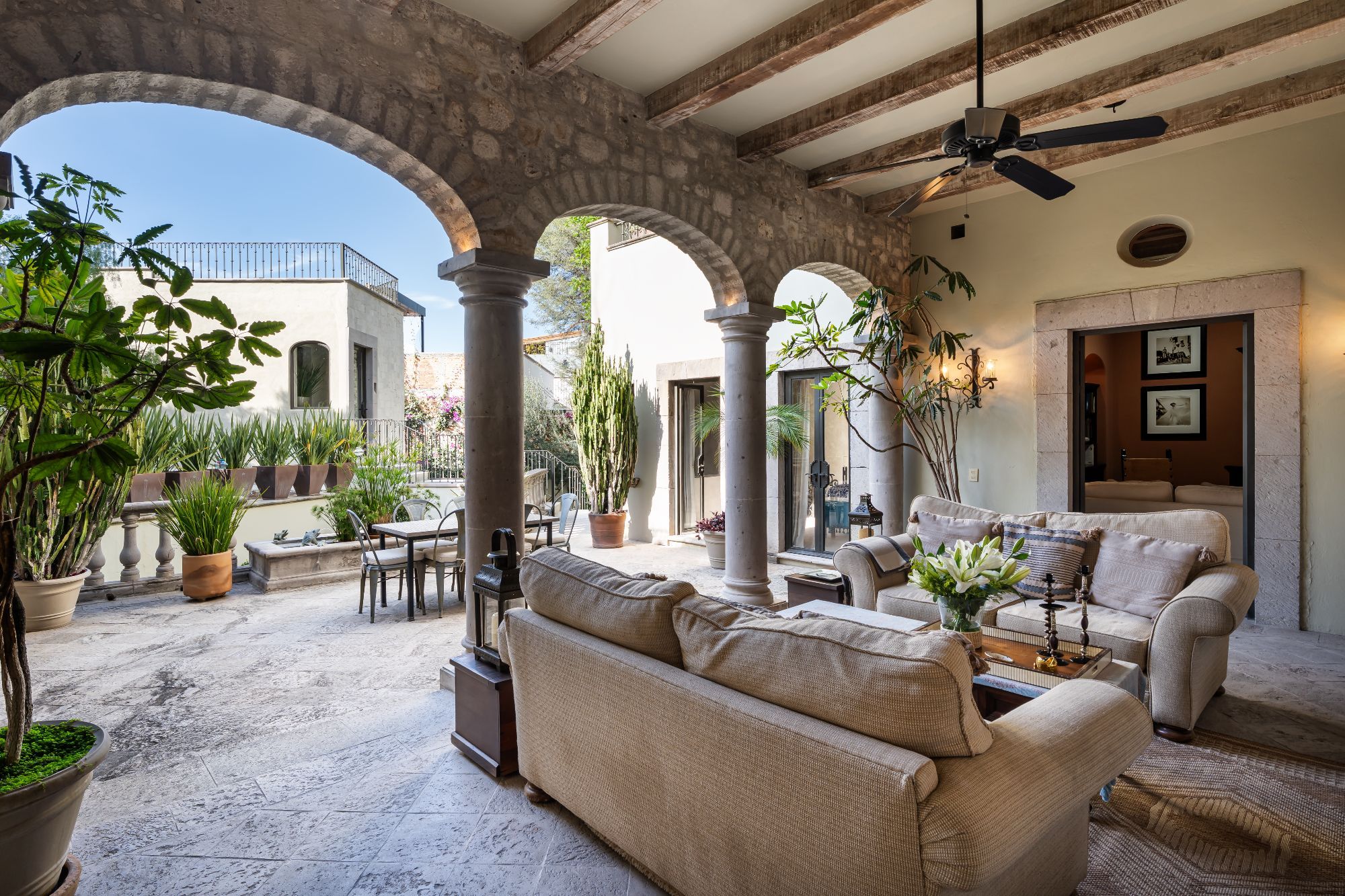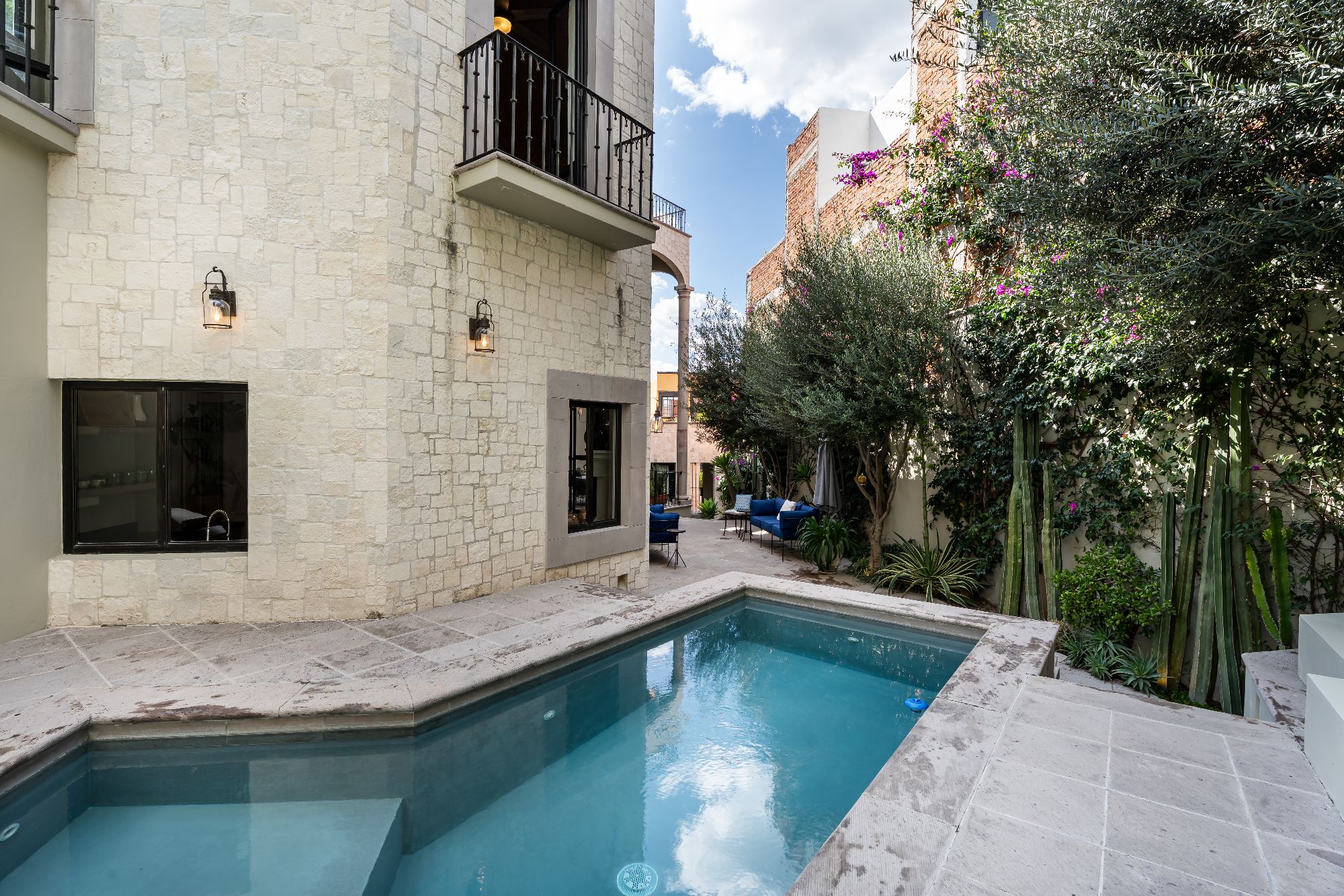 The separate casita offers an ideal retreat for guests. Thoughtfully designed, it includes its own living and dining areas, a full kitchen, and four spacious bedrooms—each with its own en-suite bathroom. Multiple private terraces provide moments of quiet solitude, while a shared swimming pool invites relaxation and fun under the San Miguel sun.
