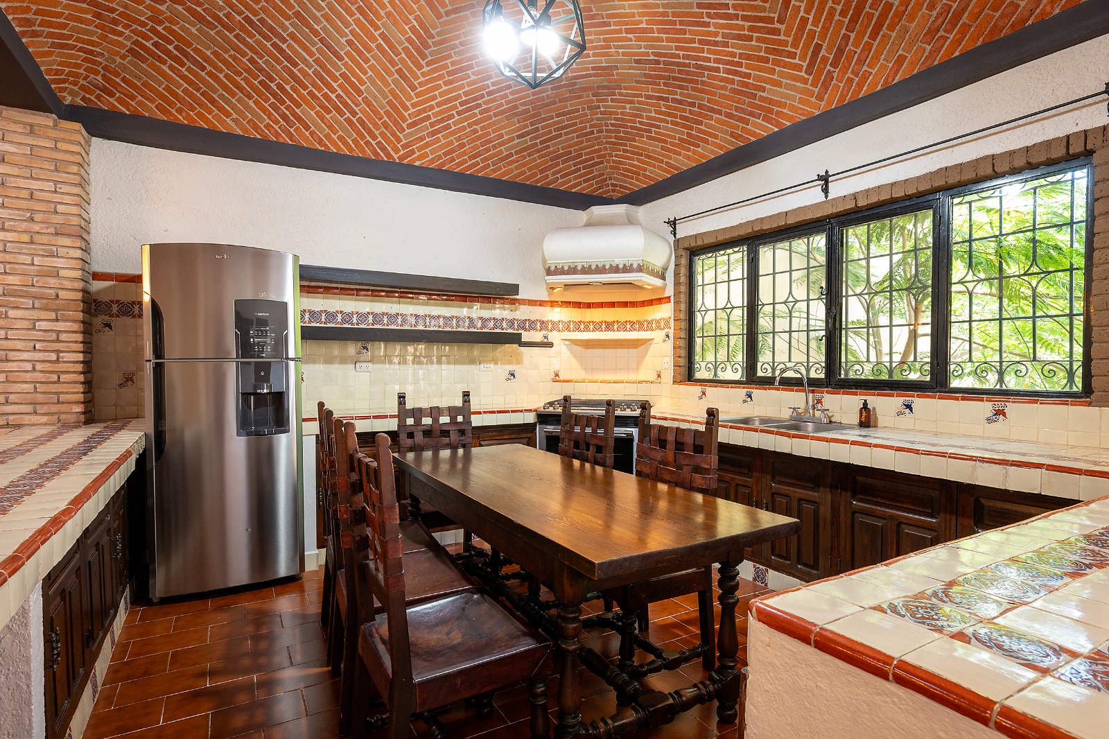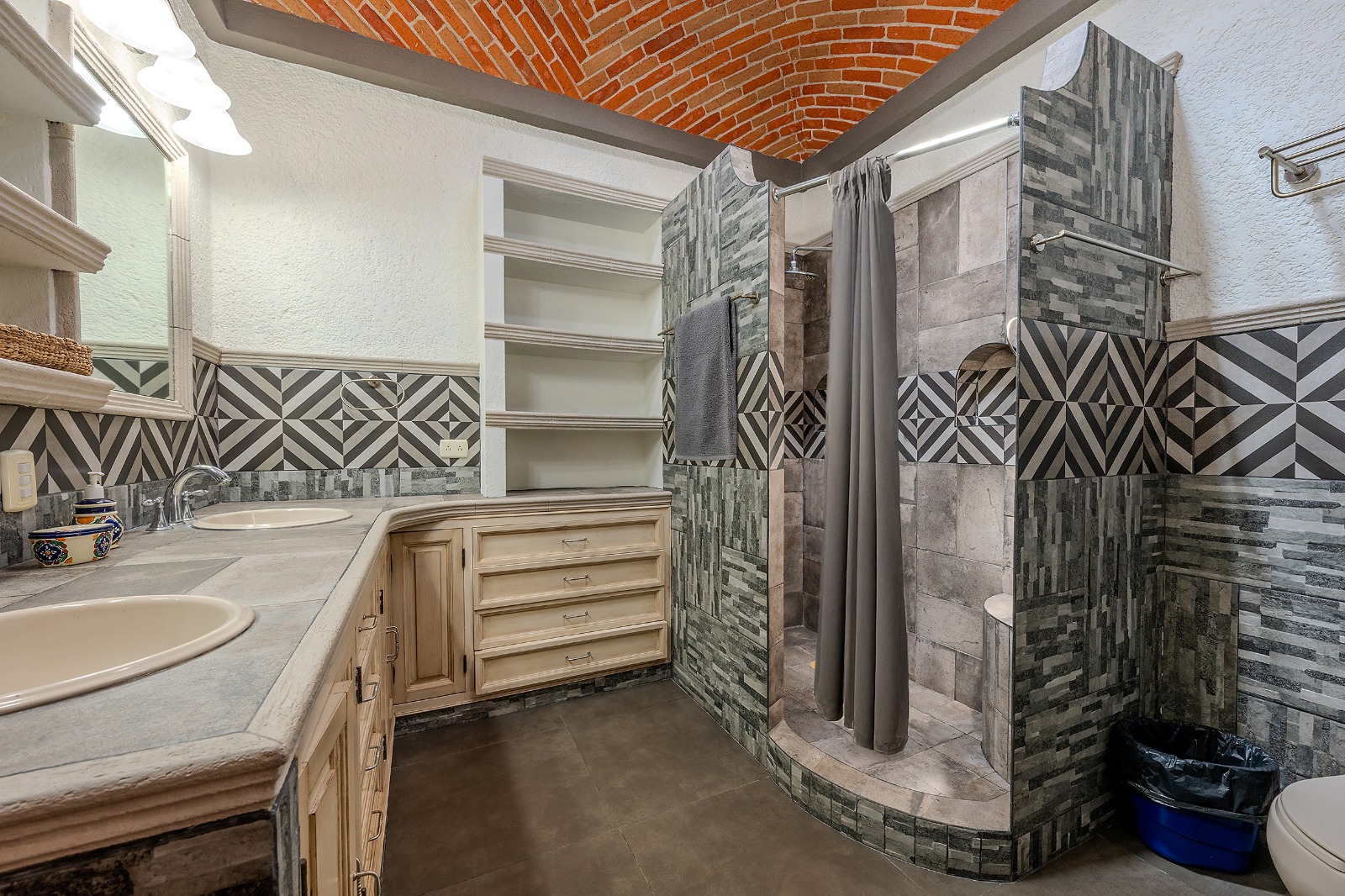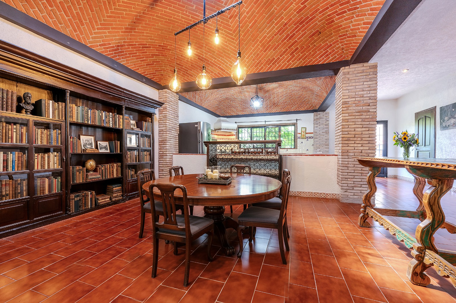 The layout is practical and welcoming, featuring two bedrooms, a study ideal for reading or working, a spacious kitchen perfect for cooking and gathering, and a living room with beautiful brick bóveda ceilings that add a touch of Mexican charm and warmth.