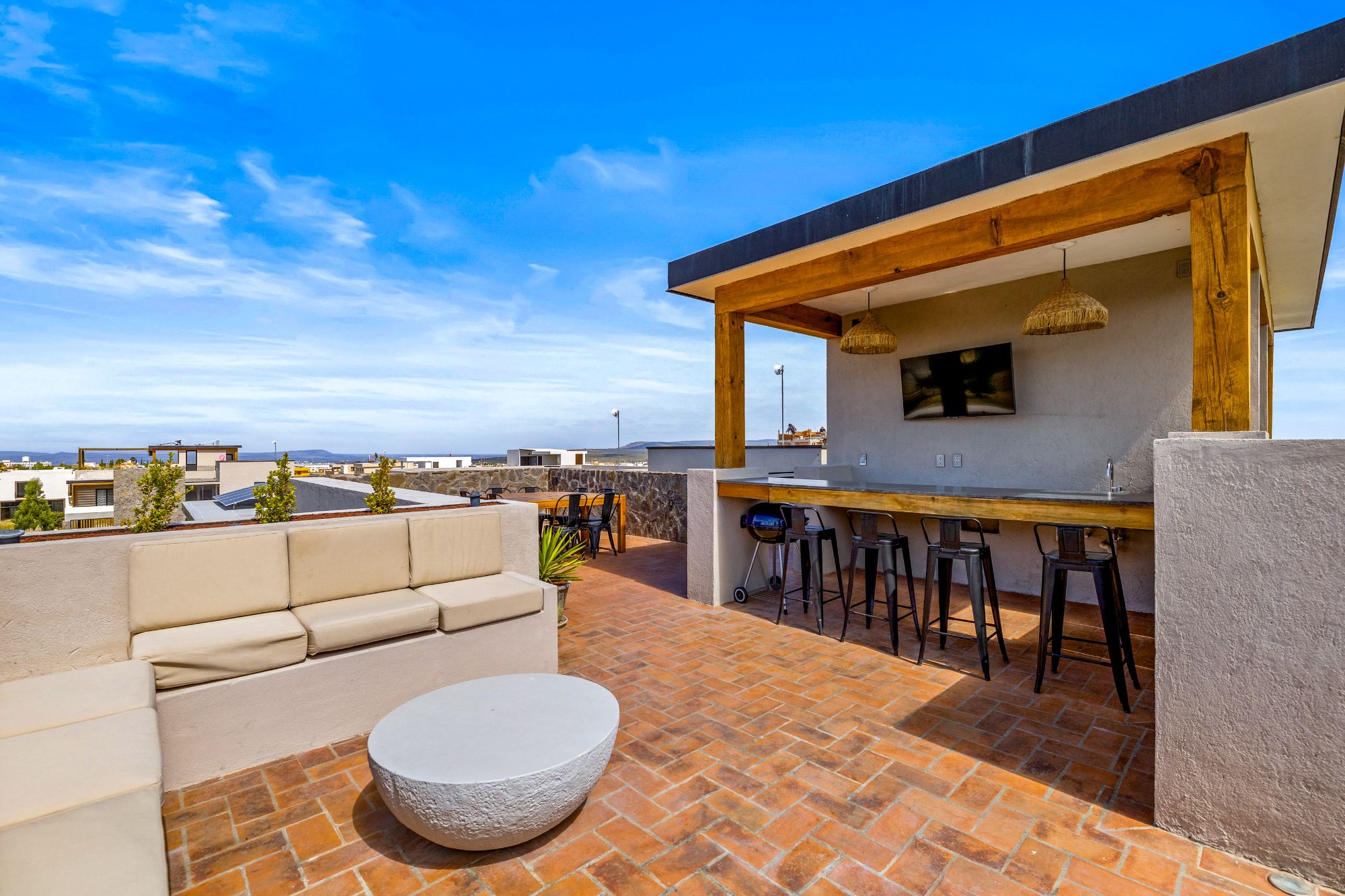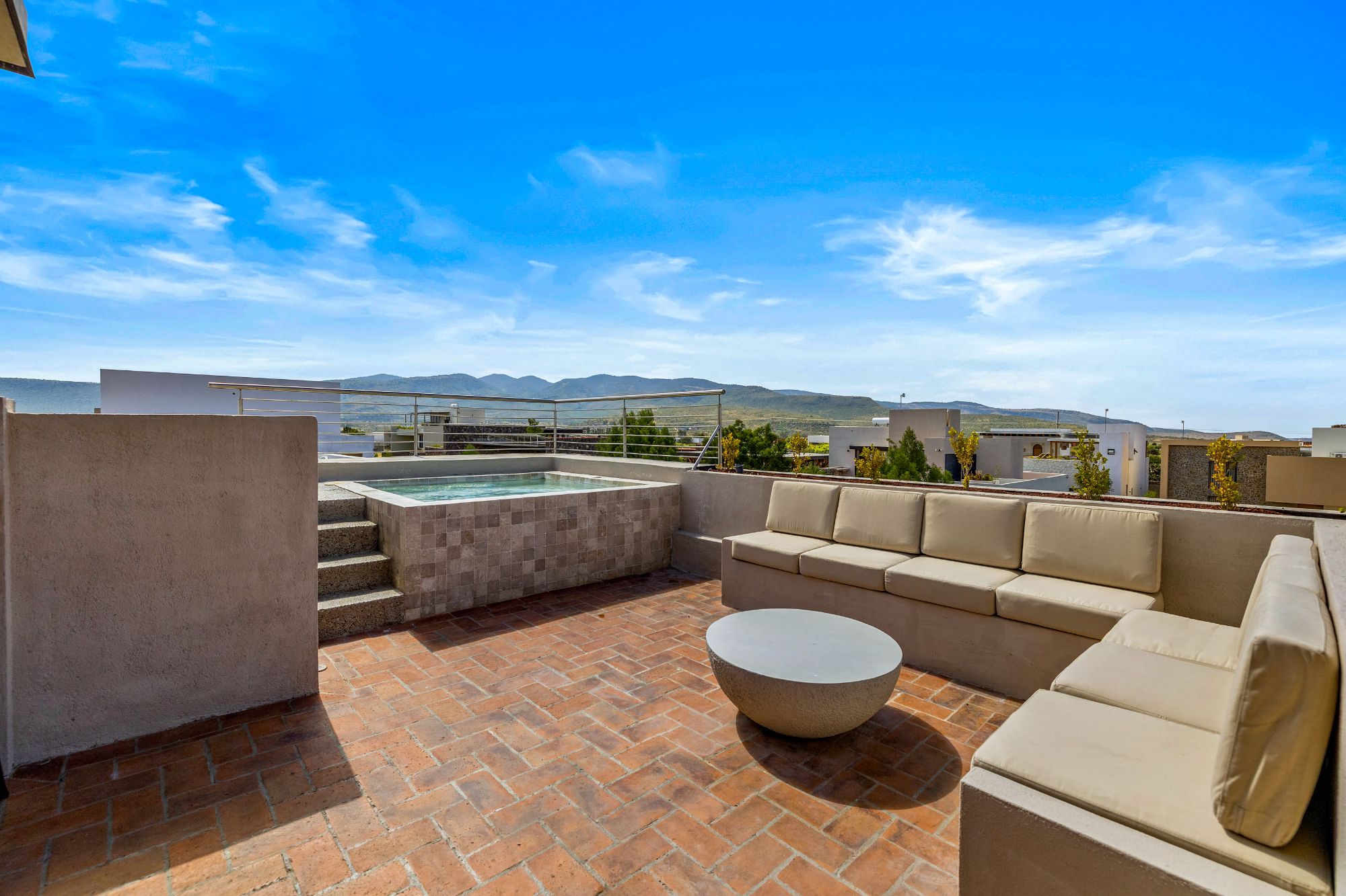 Step inside to discover an impeccably decorated interior, featuring a state-of-the-art luxury kitchen, stylish living spaces, and refined finishes throughout. The highlight of this home is the private rooftop jacuzzi, offering breathtaking mountain views—the perfect place to unwind while watching San Miguel’s golden sunsets.