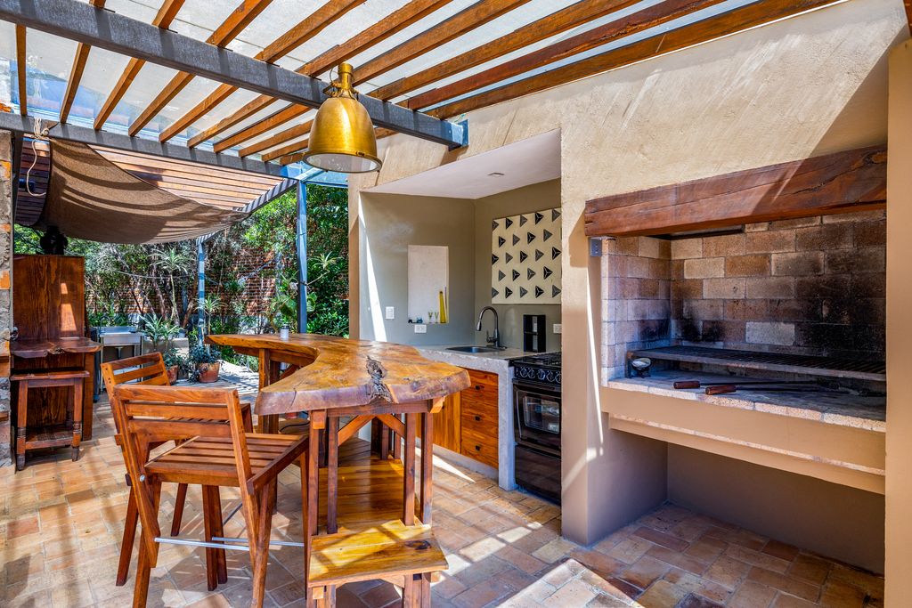 Outdoor kitchen with terrazzo and teak wood countertops