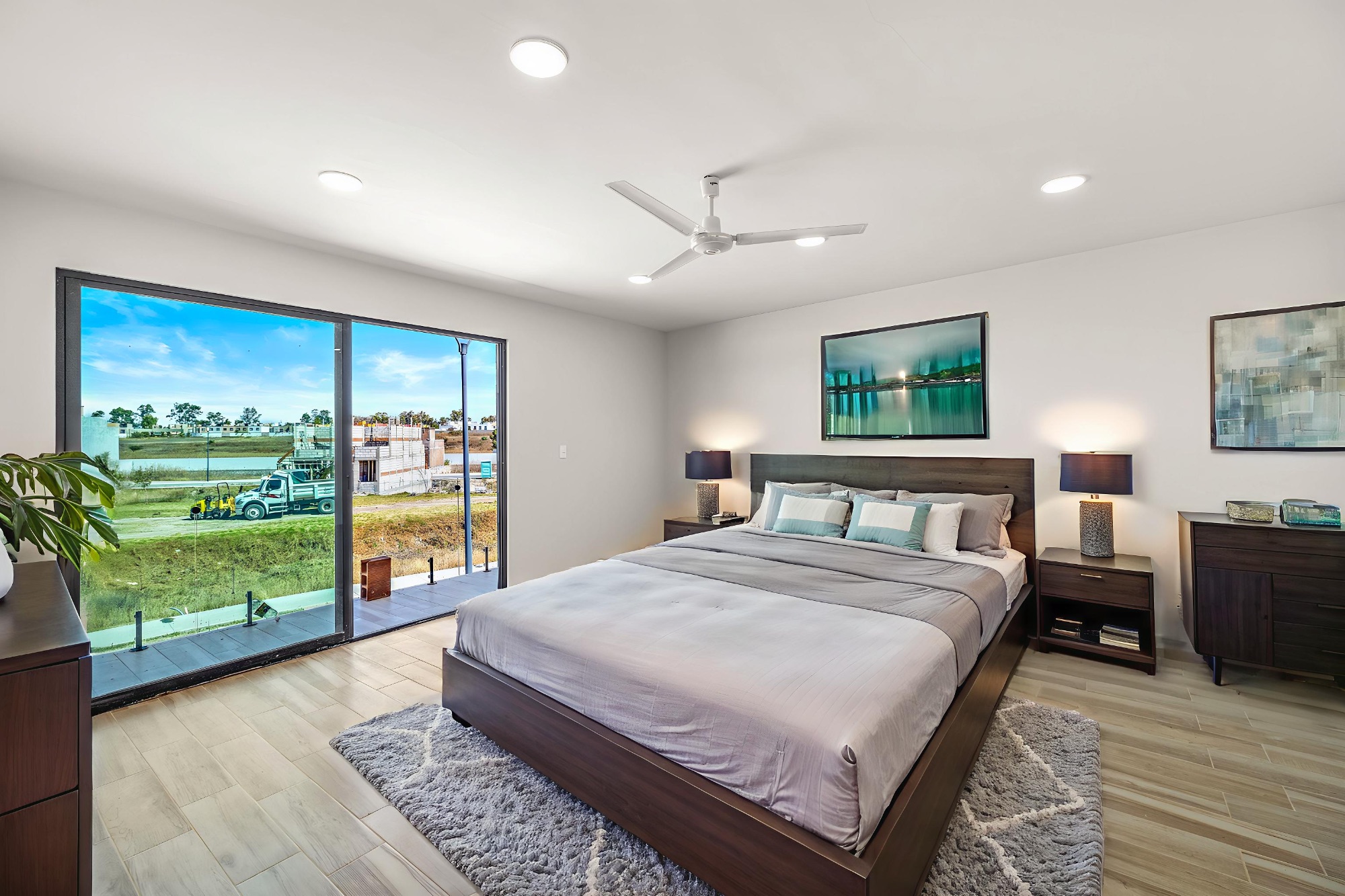 On the upper floor, the design prioritizes privacy. Here you’ll find a generously sized room that can function as a family room or study, as well as two bedrooms. The primary bedroom stands out for its ample space, walk-in closet, en-suite bathroom, and a balcony with unobstructed views. The secondary bedroom completes this floor with excellent lighting and comfort.